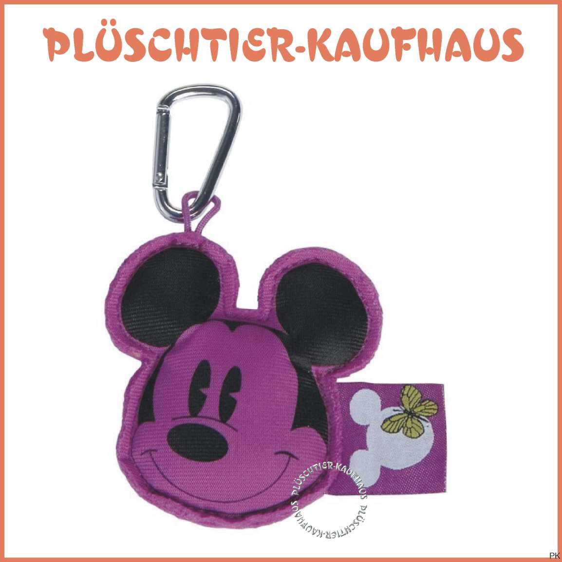liebevolles Design: mit aufgedrucktem Minnie Maus-Kopf, Karabiner für Schüssel oder zum Anhängen, aus hochwertig verarbeitetem, glattem Fleece-Material, kuschelweich gefüllt Farbe: auffallendes violett mit schwarzem Druck
