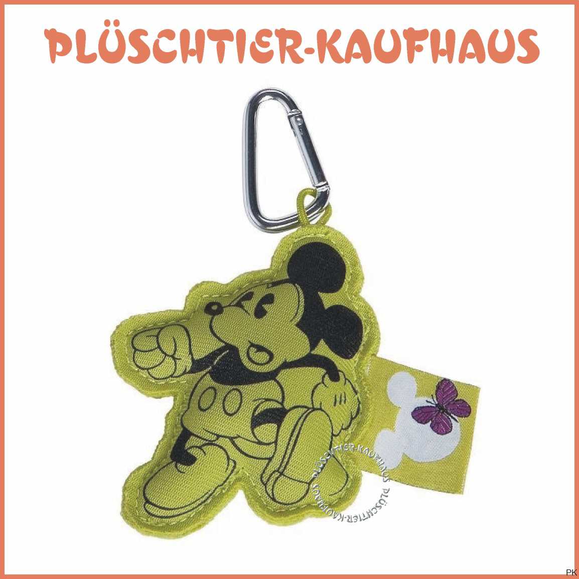 aus hochwertigem, glatten Fleece-Material mit aufgedruckter Micky Maus und Karabiner für Schüssel oder zum Anhängen weichgefüllt Farbe: chartreuse (gelbgrün) mit schwarzem Druck