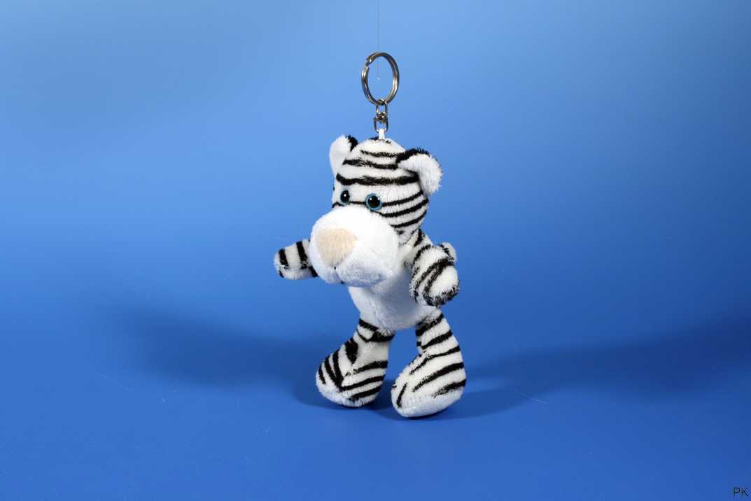 Schlüsselanhänger weißer Tiger aus Plüsch,Farbe Kuscheltier weißer Tiger: weiß, schwarzGröße Stofftier weißer Tiger: 10 cm hochwertige Plüschmaterialien wurden in ein kuscheliges Plüschtier mit naturgetreuem Design verwandelt