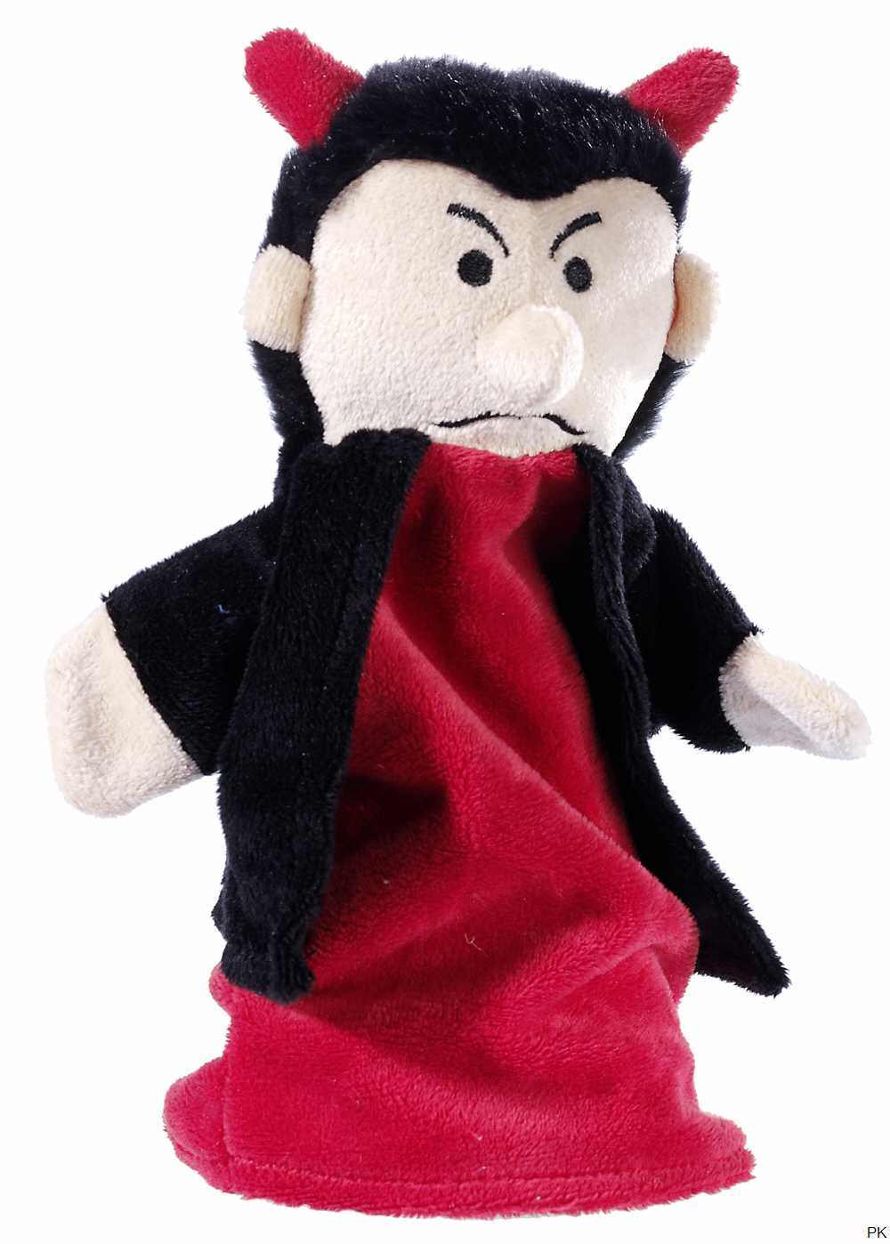 Plüschhandpuppe Teufel aus hochwertig verarbeitetem Softwool-Material.Die Stoffhandpuppe Teufel hat rote Hörner, schwarze Haare und ein grimmiges Gesicht.Farbe Handpuppe Teufel: rot / schwarz / beige Größe Kuschelhandpuppe Teufel: 26 cmDie Plüsch Handpuppe Teufel ist waschbar bei 30°vom Hersteller empfohlenes Alter: ab 18 Monaten