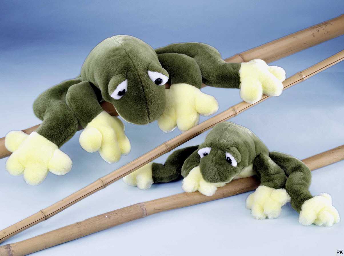 Plüsch Frosch schlenkernd,Farbe Plüschfrosch: grün-gelbGröße Plueschfrosch: 30, 40 oder 60 cm groß(in 60 cm zusätzlich als "Hängefrosch", d.h. er kann aufgehangen werden) Bild vergrößern, Kuscheltier Frosch >>