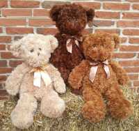 Nostalgie Teddybär aus hochwertig verarbeitetem Curly Material.Der kuschelige Teddybär ist bekleidet mit einer Schleife.Farbe des Teddybären: schokobraun, braun-cognac oder beigeGröße Teddy: 60 cm